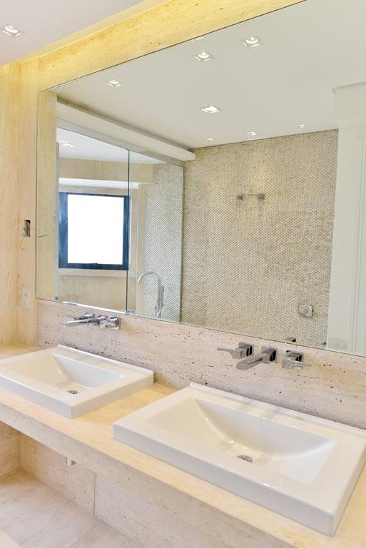 Todos os banheiros com Box de vidro até o teto e assentos dos vasos com amortecimento da própria Roco